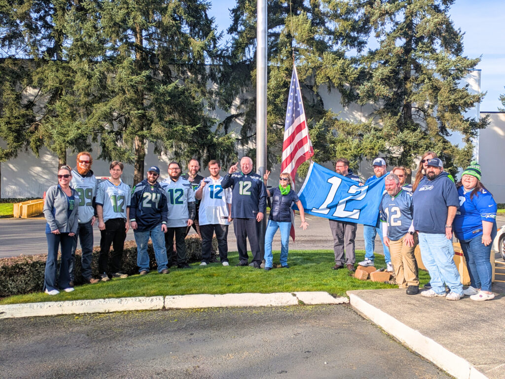Auburn team members held a 12th man flag raising event on Friday February 6th at the Auburn Terminal before the Super Bowl. In honor of our hometown Seattle Seahawks, we selected our own Kilian Inglet who is also a member of the Seattle Seahawks Blue Thunder drum line, to raise the 12th man flag. Go Hawks!